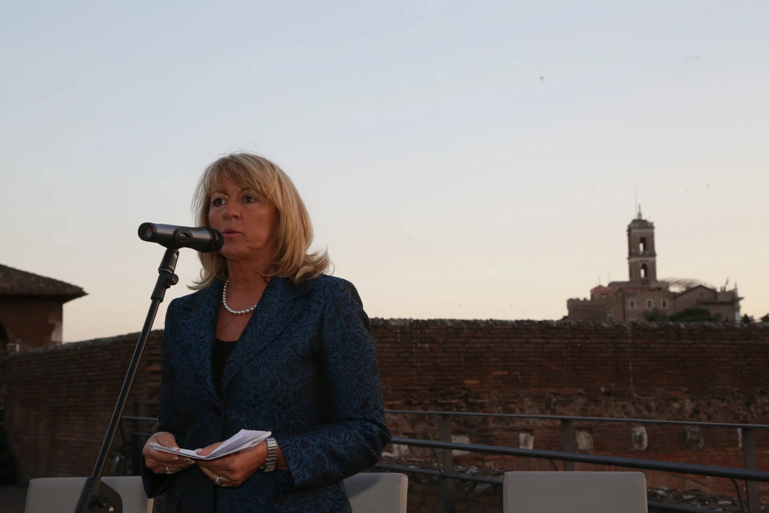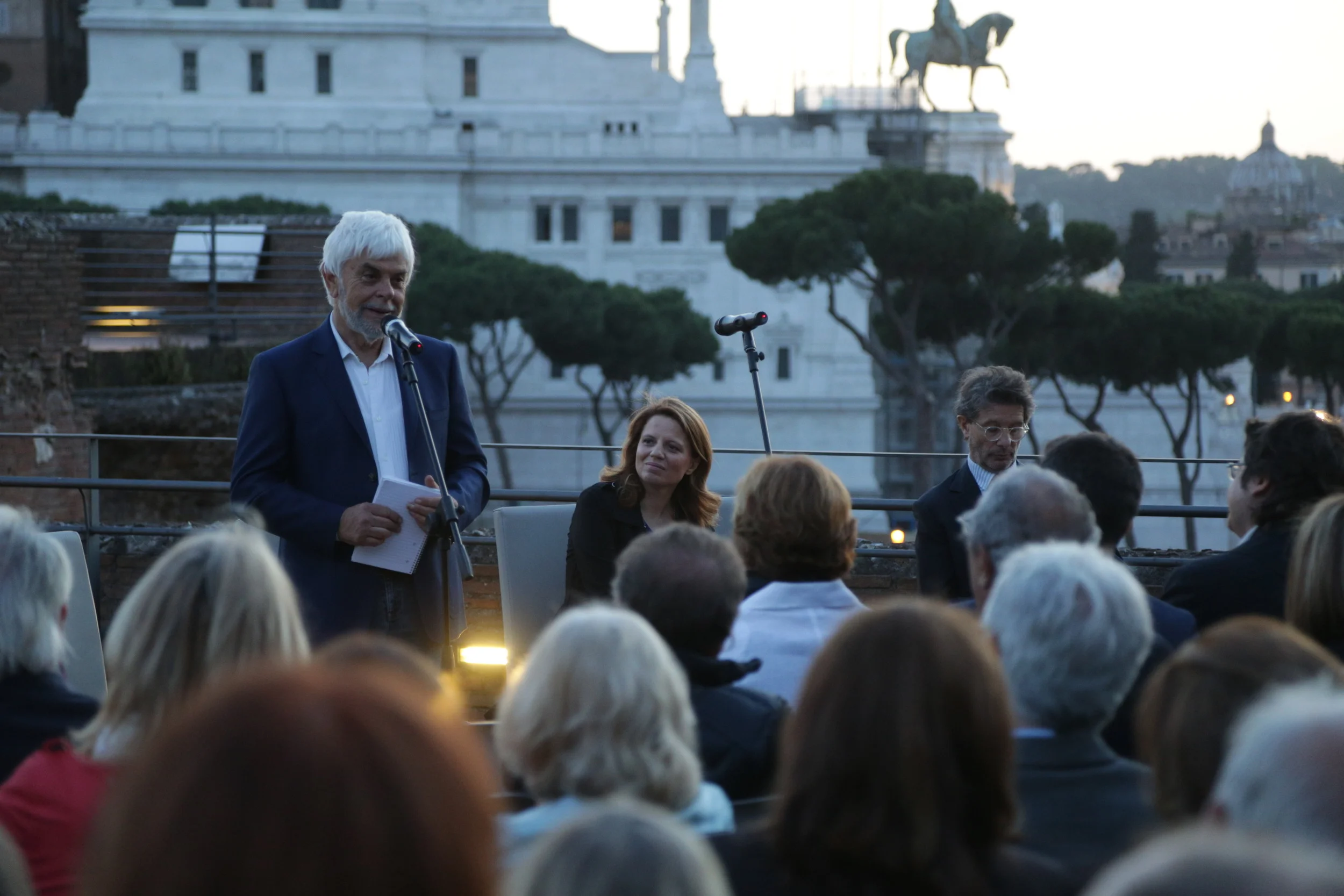 Da destra: Aldo Sciamanna (Presidente della Fondazione Dià Cultura), Lucrezia Ungaro (Sovraintendenza Capitolina ai Beni Culturali) e Angelo Bucarelli (Ufficio Stampa; Fondazione Dià Cultura) durante la serata inaugurale